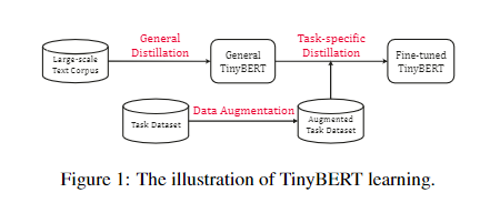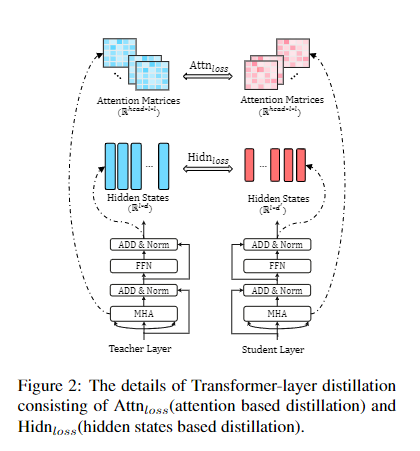 论文并没有对task-specific distillation的蒸馏部分进行阐述,说明其与general distill的蒸馏方式应该是一样的,只是一个处于预训练阶段,一个处于微调阶段。
