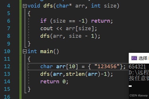图中dfs函数就是利用自己调用自己的方式倒着打印数组的内容,出口就是在dfs中用if条件判断出口标准。