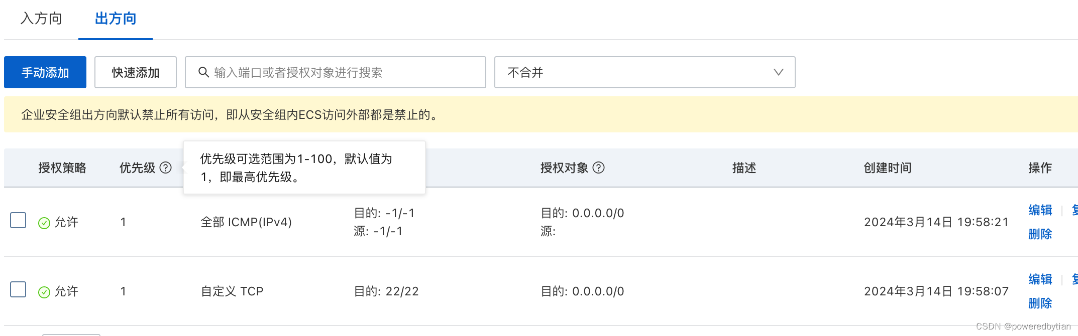 回复之后才知道,企业级安全组 必须要出入口全部开放才行。