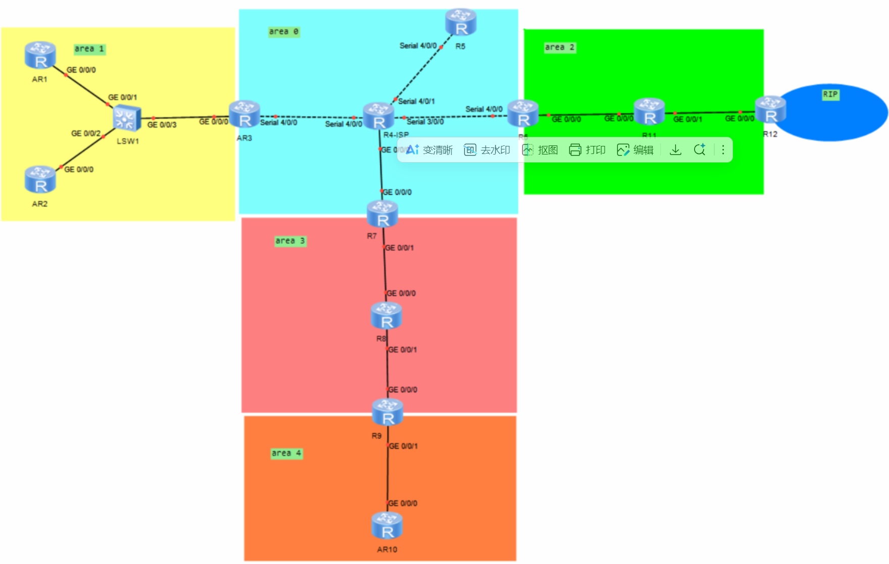 [R3-ospf-1-area-0.0.0.1]abr-summary 172.16.0.0 255.255.224.0 abr与asbr设备聚合