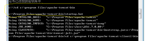 其他按照默认配置不作修改,双击C:\program files\apache-tomcat\bin\startup.bat启动tomcat ,或者cmd输入见图11、图12。