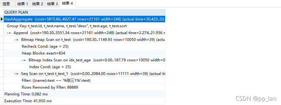 explain SELECT * FROM "t_test" where age= 25 or name like '%张三1%';