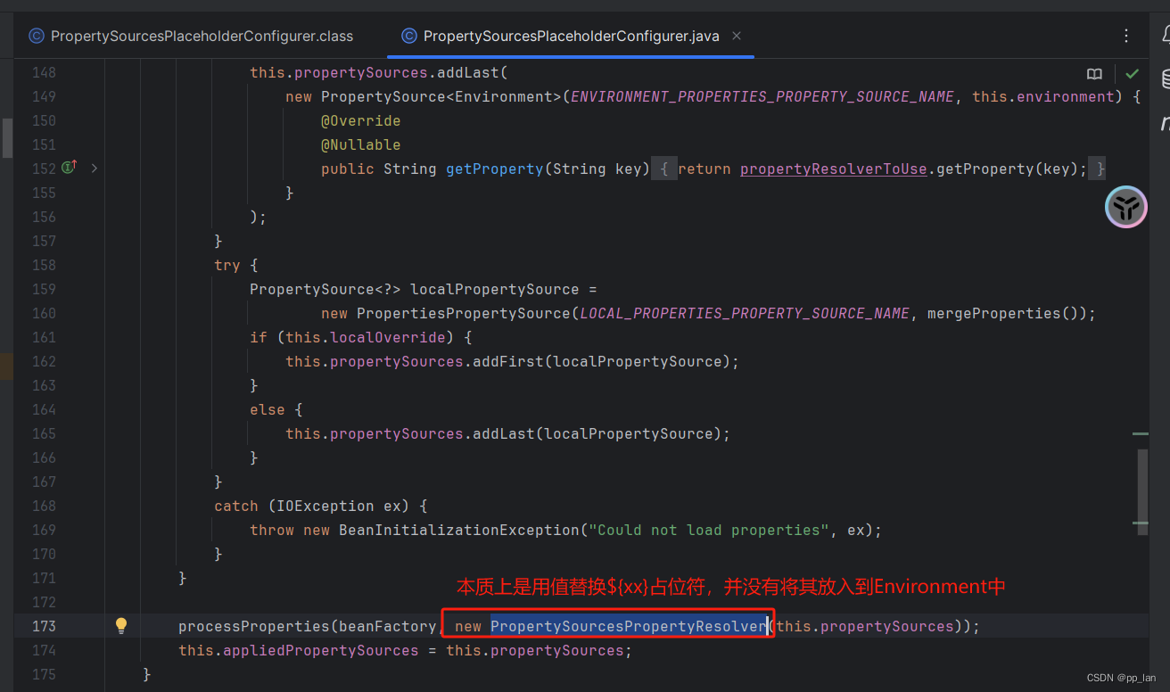 将Springboot项目中自定义的一个扩展工具类移植到Spring框架项目中的时候发现一个问题。在springboot中application.yml中的配置内容可以从Environment中获取,但是在spring中context:placeholder对应的配置文件中的配置却无法从Environment中获取。为了搞清楚这一问题,对该部分源码进行深入阅读。