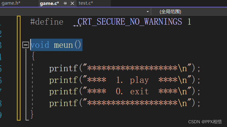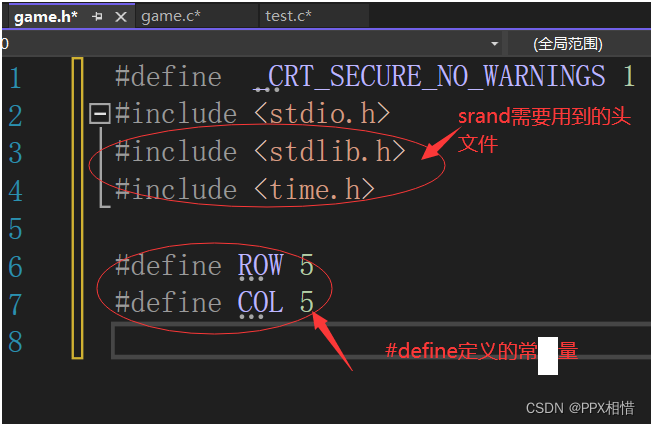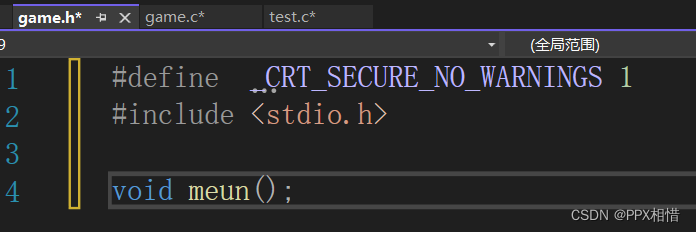 我们先创建两个头文件,一个test.c, 一个game.c, 一个源文件game.h。