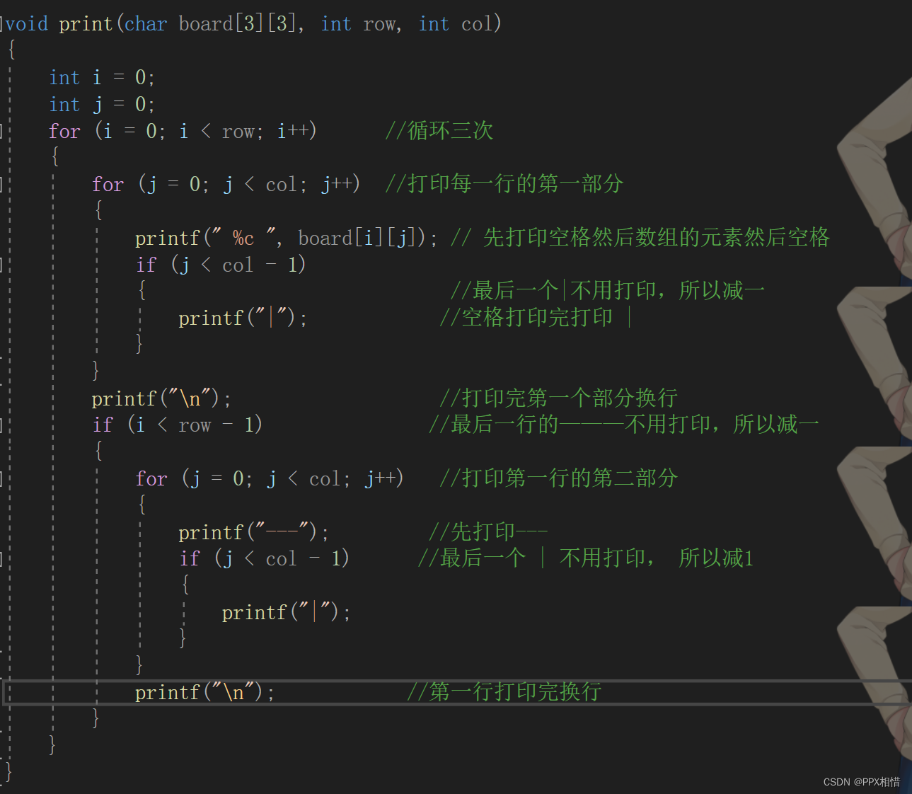 printf(" %c ", board[i][j]); // 先打印空格然后数组的元素然后空格