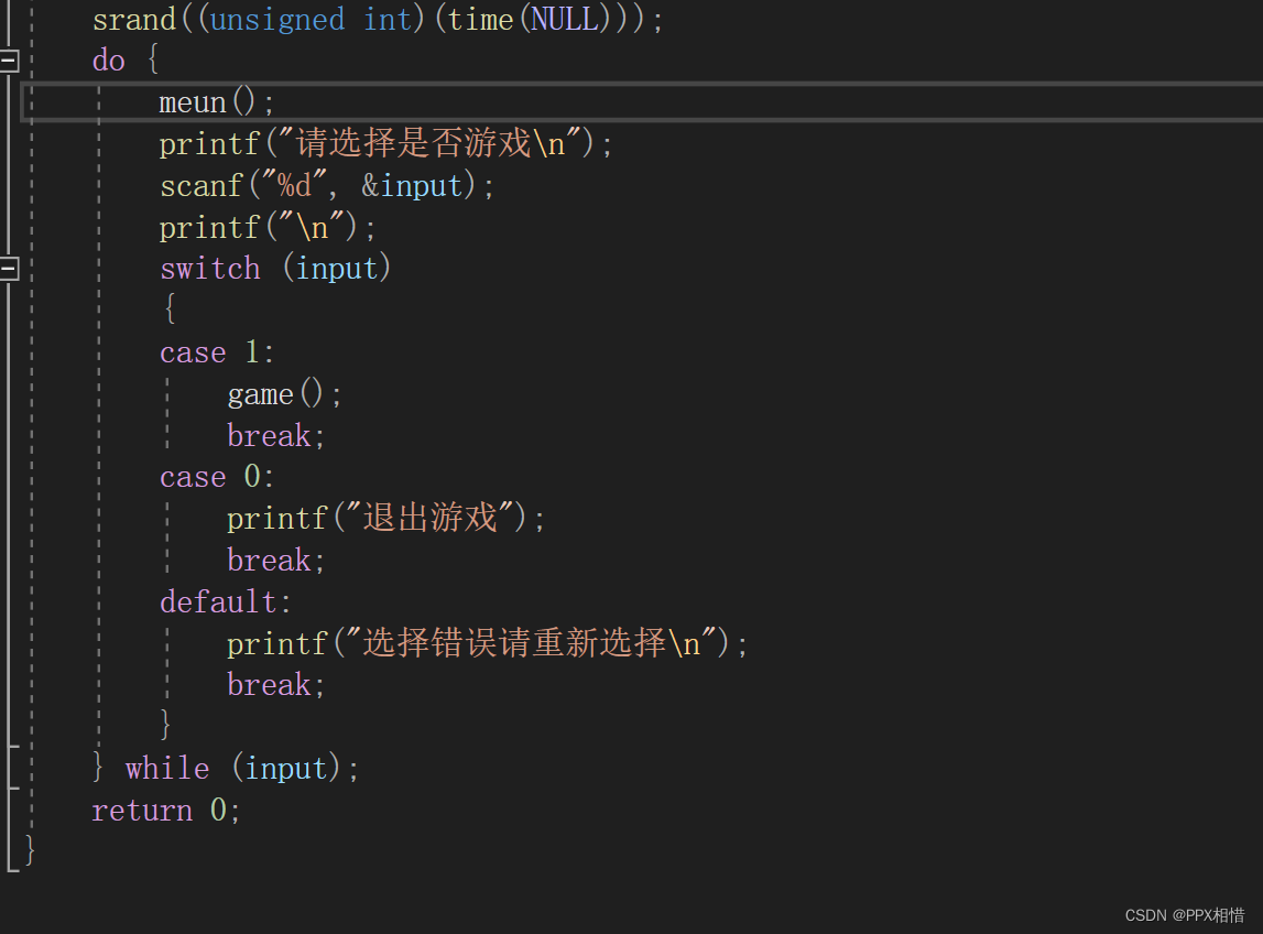 要实现游戏我们要先让他运行一次,然后我们输入选择玩还是不玩。