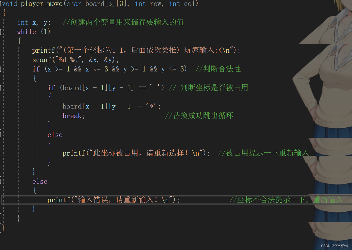 玩家要输入两个值,所以先创建整型的X Y变量,然后用scanf读取。