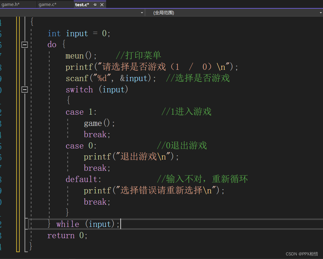 当判断结果是C的时候,要继续游戏,所以应该是个循环。