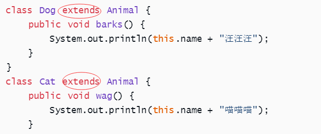修饰符 + class + 子类类名 + extends + 父类类名 {