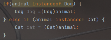 因此java中引入了instanceof 来判断,如果结果为true那么便会执行下面的向下转型。
