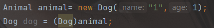 因为我们之前将animal向上转型了,此时它的类型是Animal的,所以要强转为Dog,然后赋值给dog。
