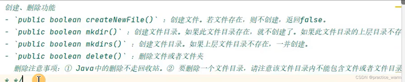 System.out.println(f2.createNewFile()); //操作文件:创建新文件,因为会报异常,因此要try-catch一下