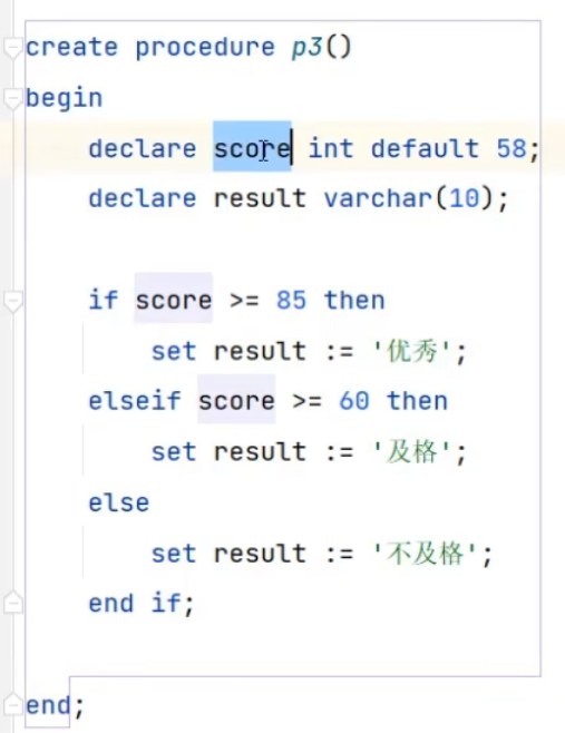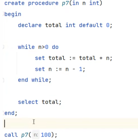 局部变量的作用范围仅为存储过程中(begin end 块之间)