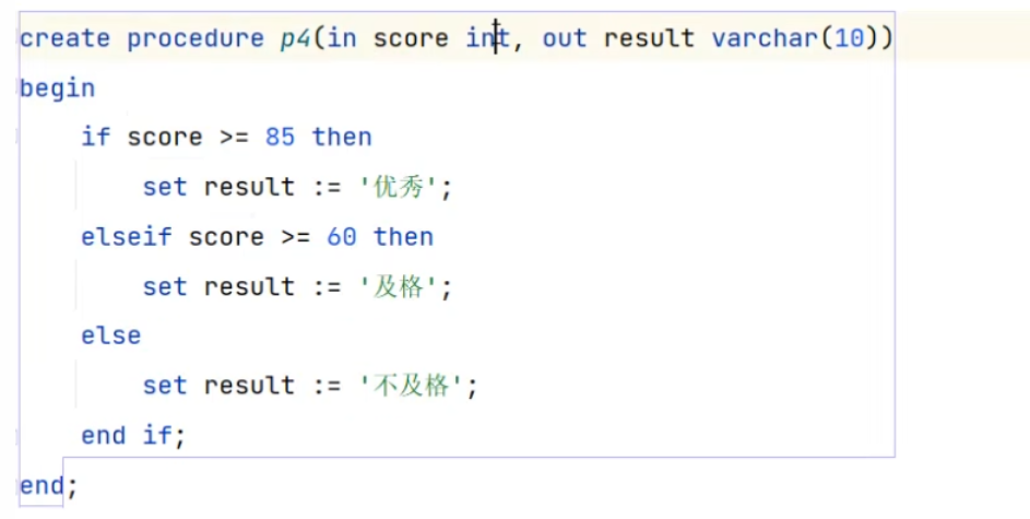 -- in 表示输入参数、out 表示该参数作为输出参数、inout 既可以作为输入,也可以作为输出