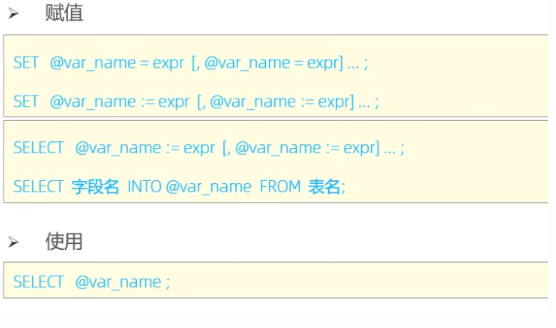 set @mygender := '男',@myhobby = 'java';