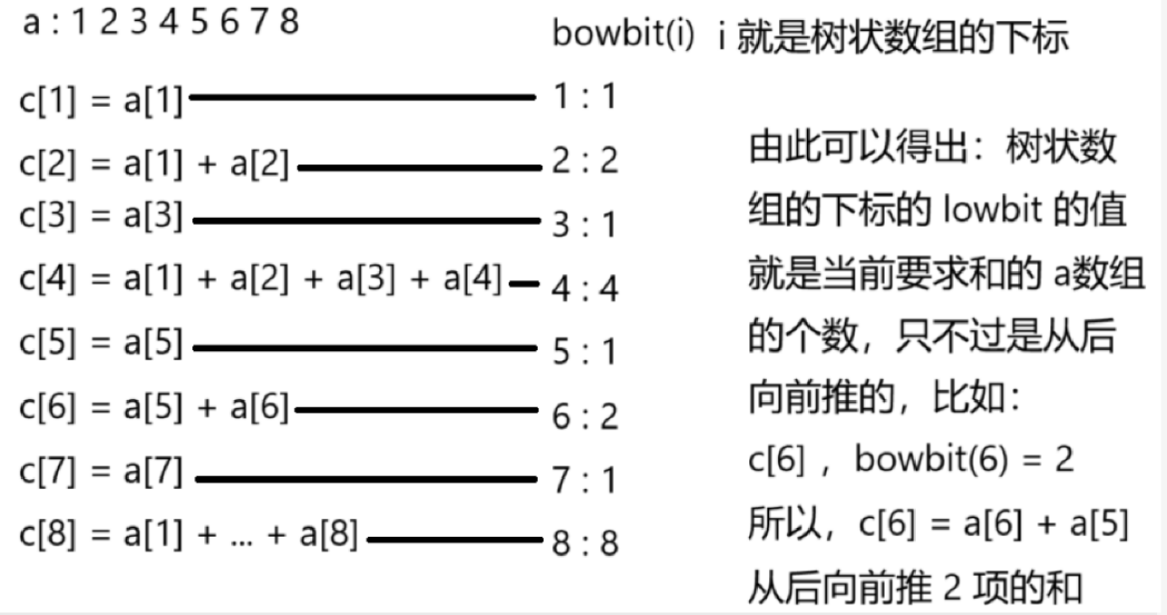 for(int j = i-lowbit(i)+1;j <= i;j++) {