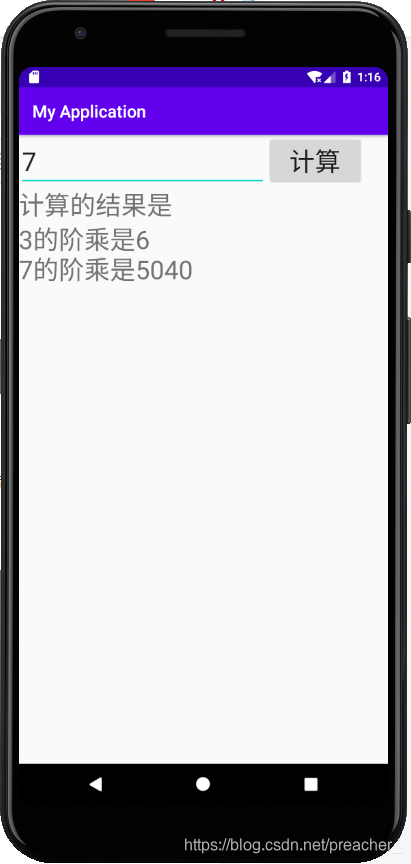 Toast.makeText(FactorialActivity.this, "成功接收number="+number,Toast.LENGTH_LONG).show();