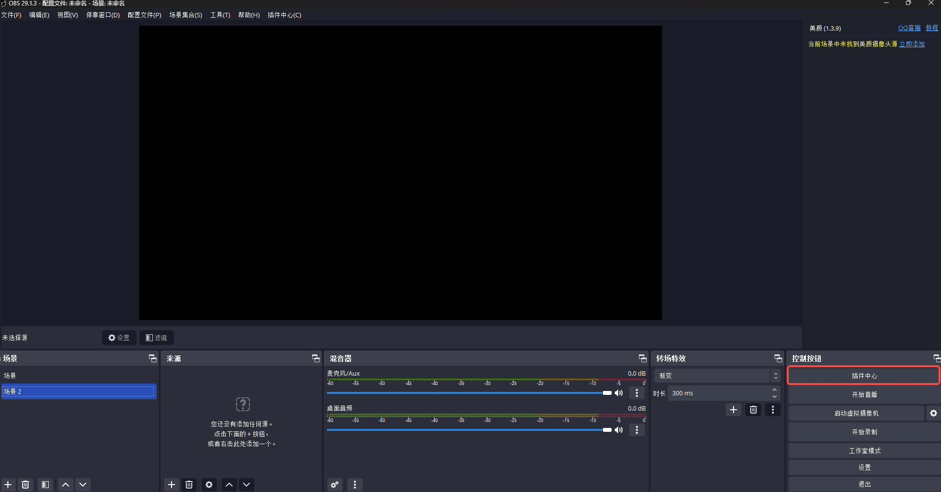 第一步:打开OBS插件中心
