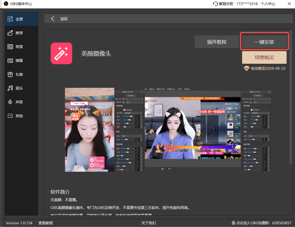 第二步:安装OBS美颜插件