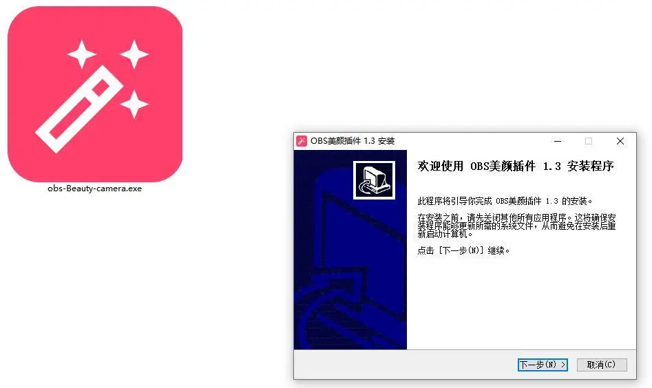 •官方下载地址:https://download.obsworks.com/installer/other/OBS_beauty_Filter_installer.exe