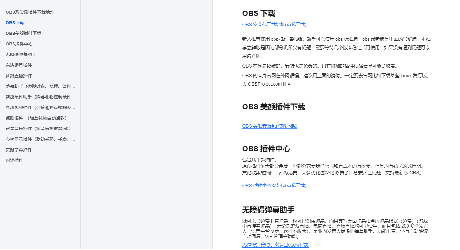 除了上面这个下载地址,还可以访问这个在线文档,我整理了当前最实用的OBS插件,里面都安排了下载地址,有需要大家可以访问下载