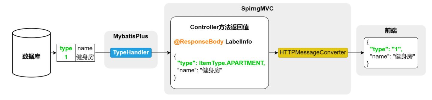 Mybatis预置的TypeHandler可以处理常用的数据类型转换,例如String、Integer、Date等等,其中也包含枚举类型,但是枚举类型的默认转换规则是枚举对象实例(ItemType.APARTMENT)和实例名称("APARTMENT")相互映射。若想实现code属性到枚举对象实例的相互映射,需要自定义TypeHandler。