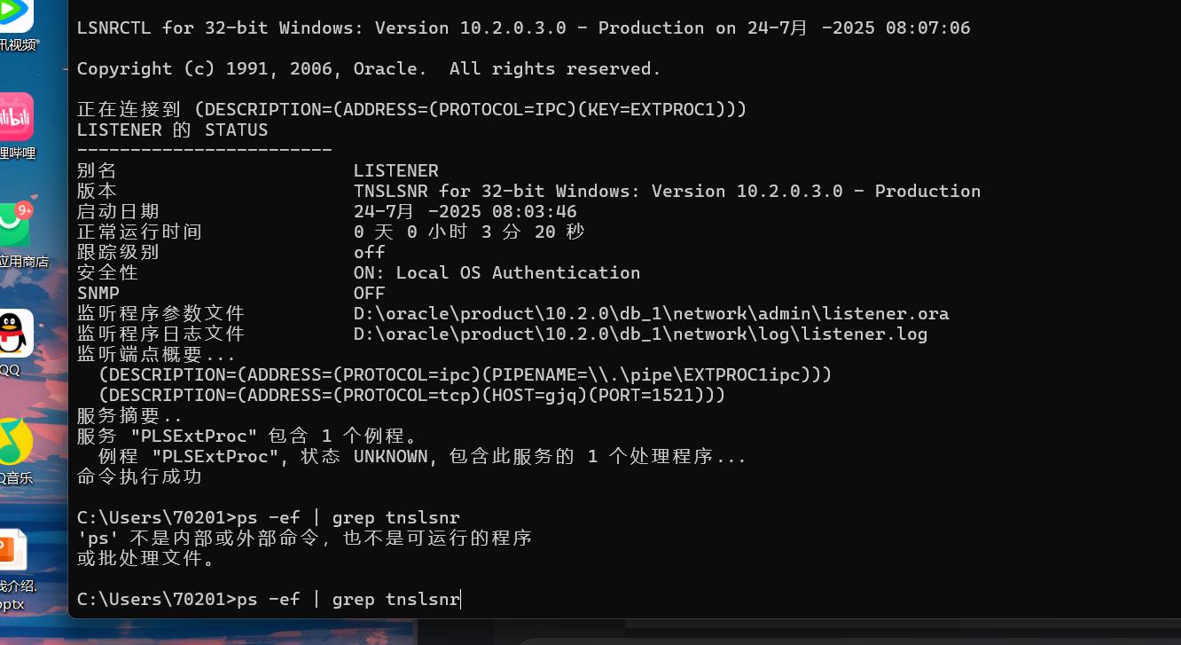 若出现下面界面,则监听正在运行,会显示监听的状态、版本、监听的地址、已注册的服务等信息。
