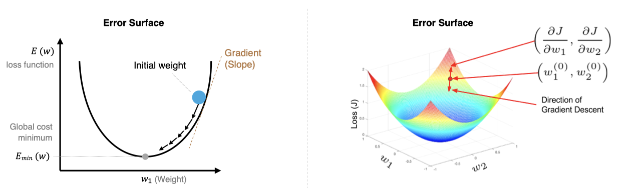 w_{ij}^{new}= w_{ij}^{old} - \alpha \frac{\partial E}{\partial w_{ij}}