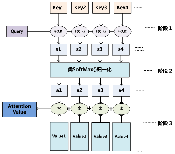 αᵢ与其对应的完整内容vᵢ(Value)相乘,然后将所有结果相加,得到最终的输出向量。-