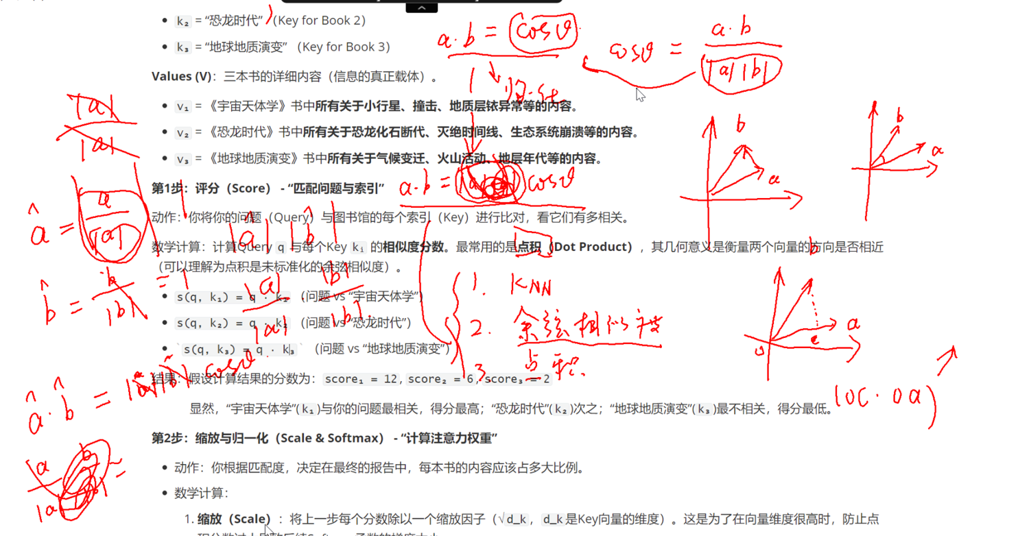 1. 评分 score(q, kᵢ) = q · kᵢ :用你的问题去匹配所有书的索引 ,得到一组原始相关性分数
