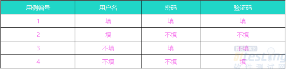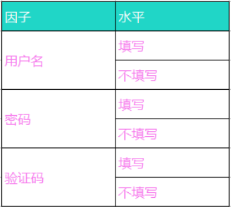 有如下用户登录页面,三个登录条件:用户名、密码、验证码,考虑填写或不填写,用正交表设计测试用例。