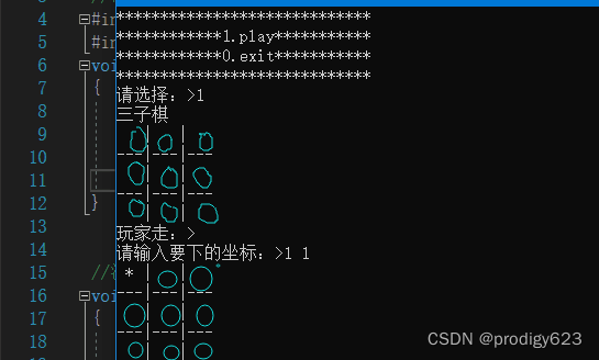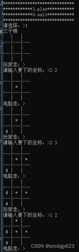 最后每当玩家或电脑下棋后都要更新打印一次棋盘
