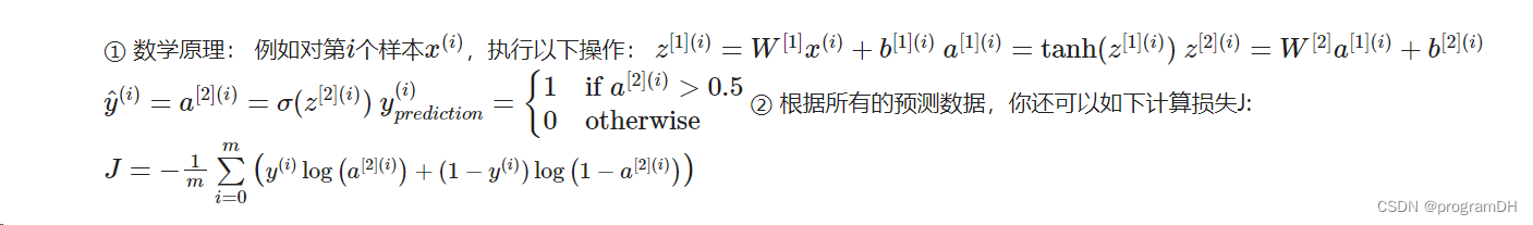 # (np.dot(Y, predictions.T) + np.dot(1 - Y, 1 - predictions.T)表示的是预测正确的结果,第一个表示的是预测值为正确且真实值也为正确的样本数量,第二个表示的是预测值为错误且结果也为错误的样本数量。总之两者相加就是最终准确预测的样本数量