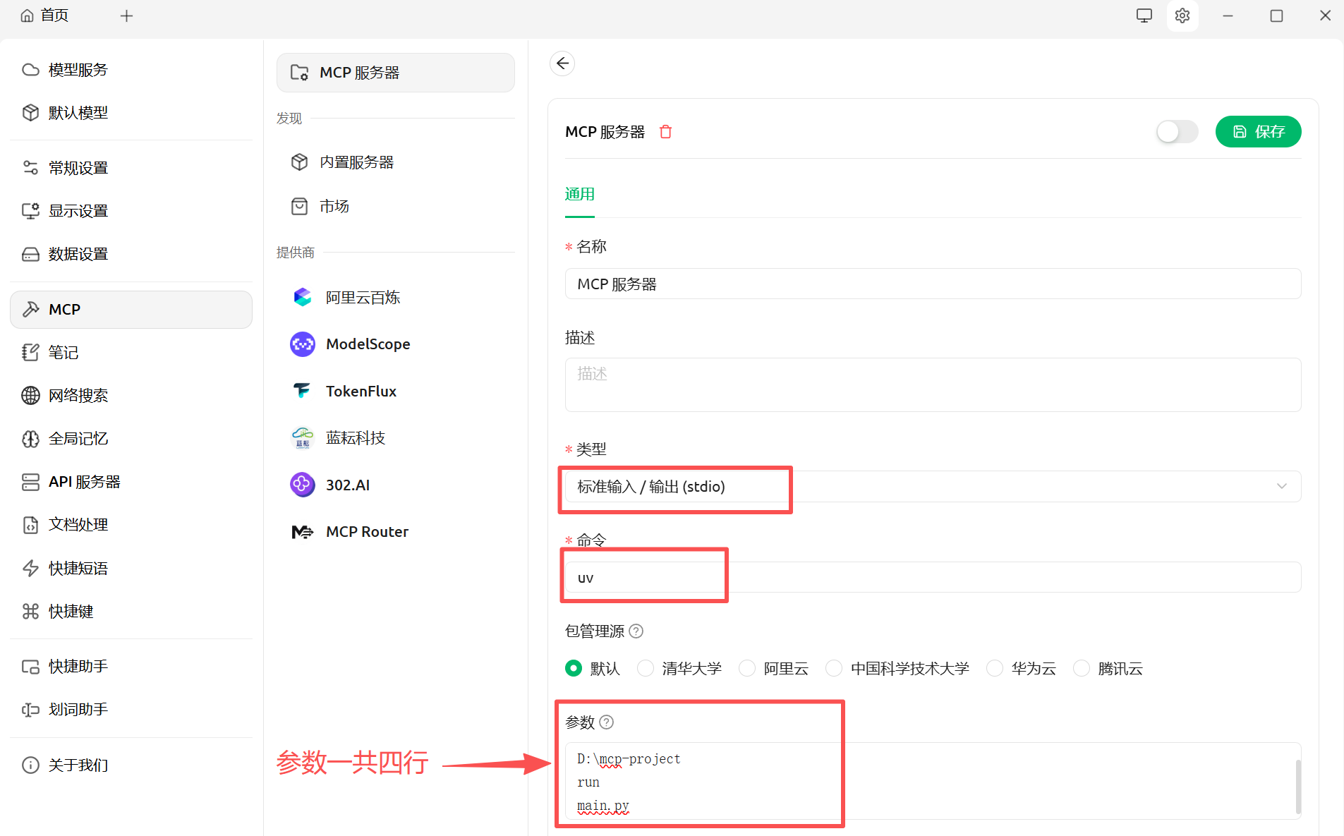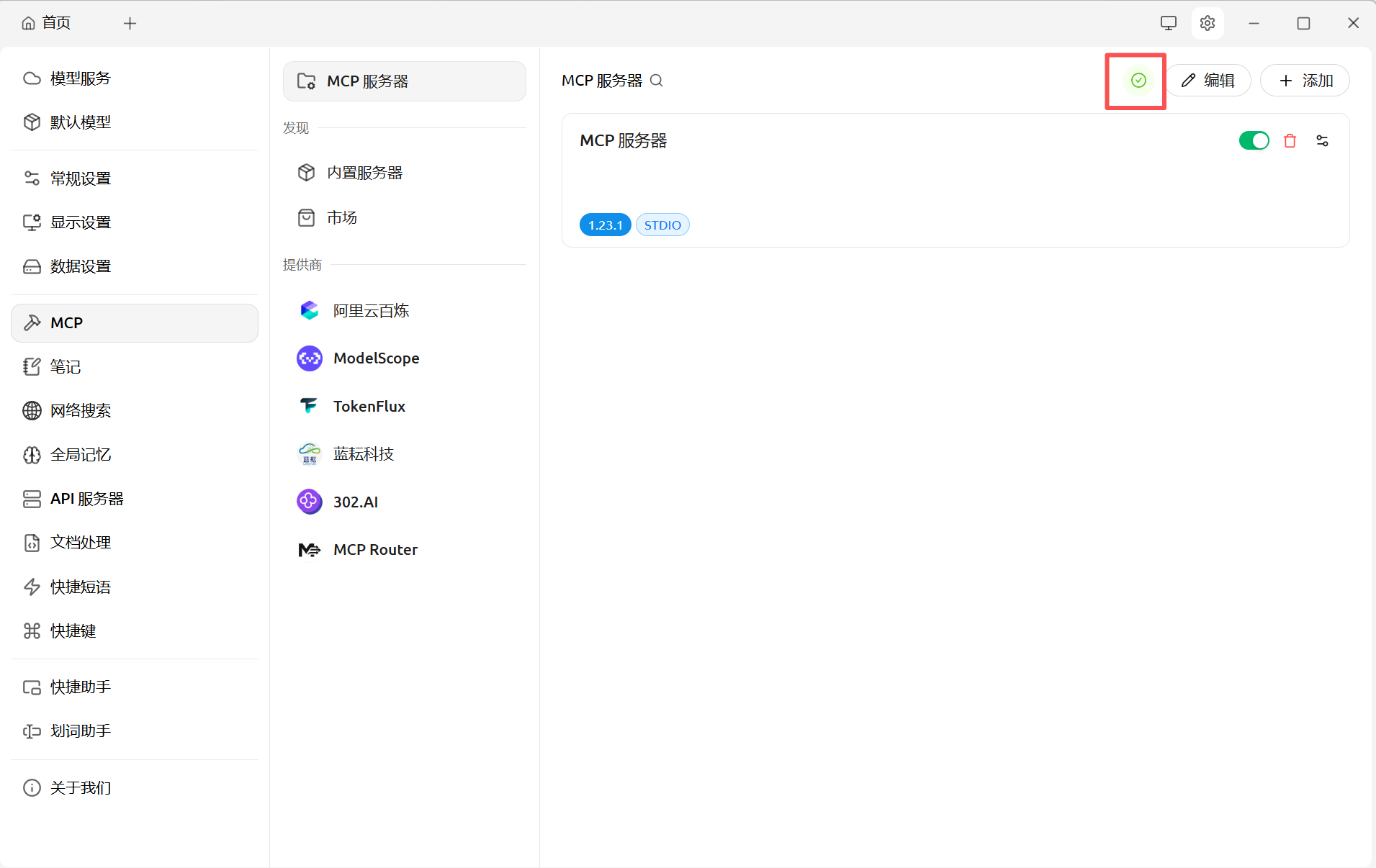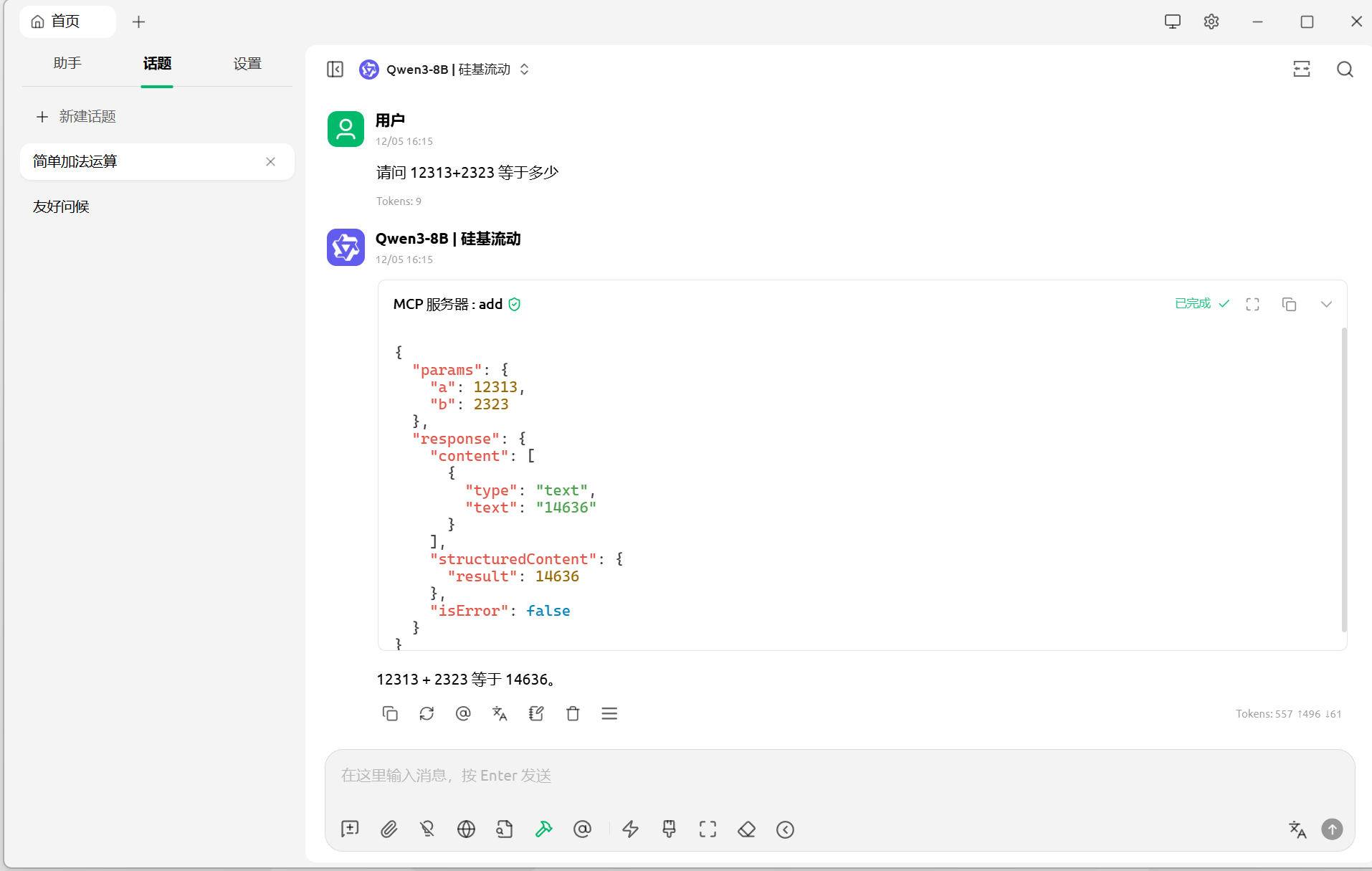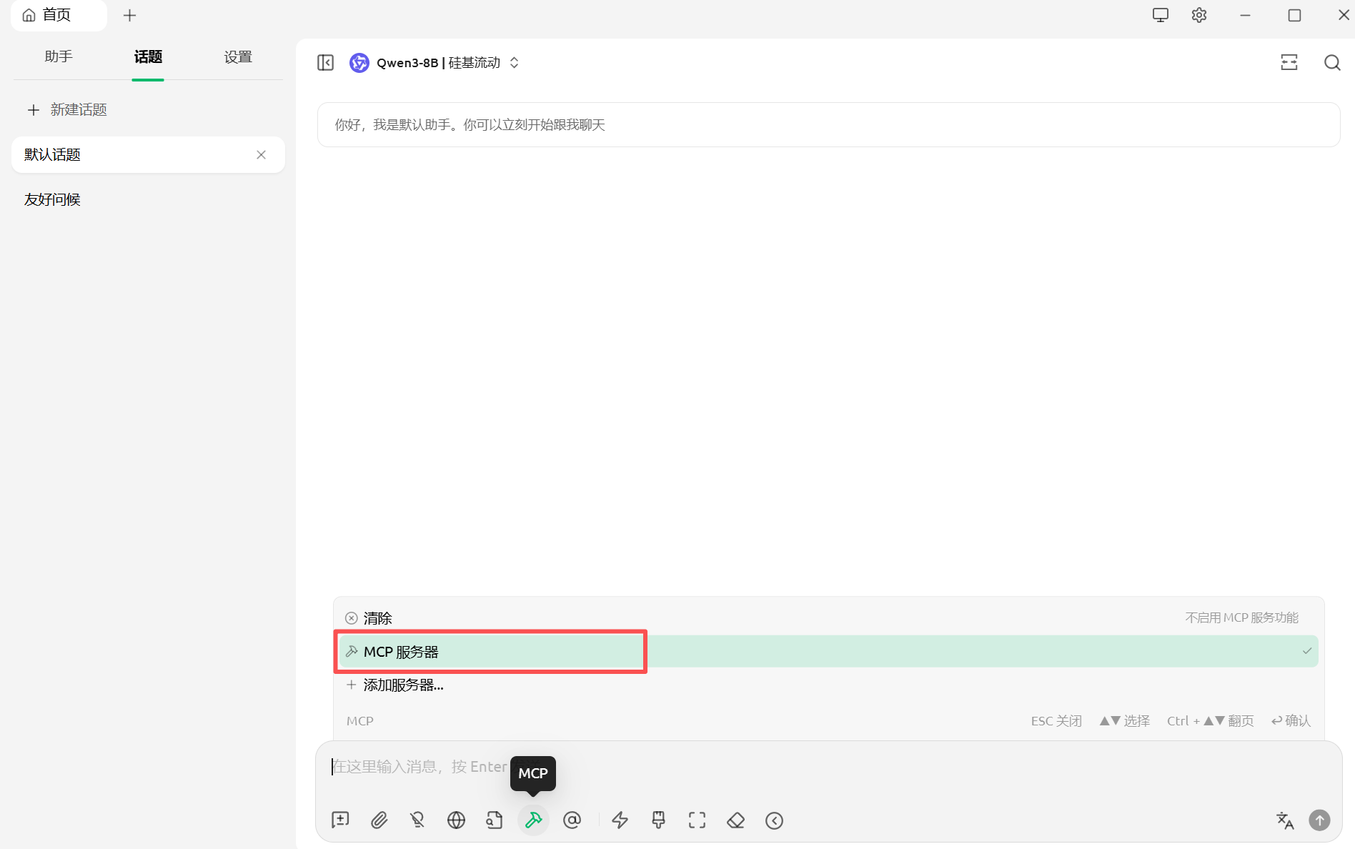 消息输入框下面的一个按钮,选择刚刚创建的mcp 服务器