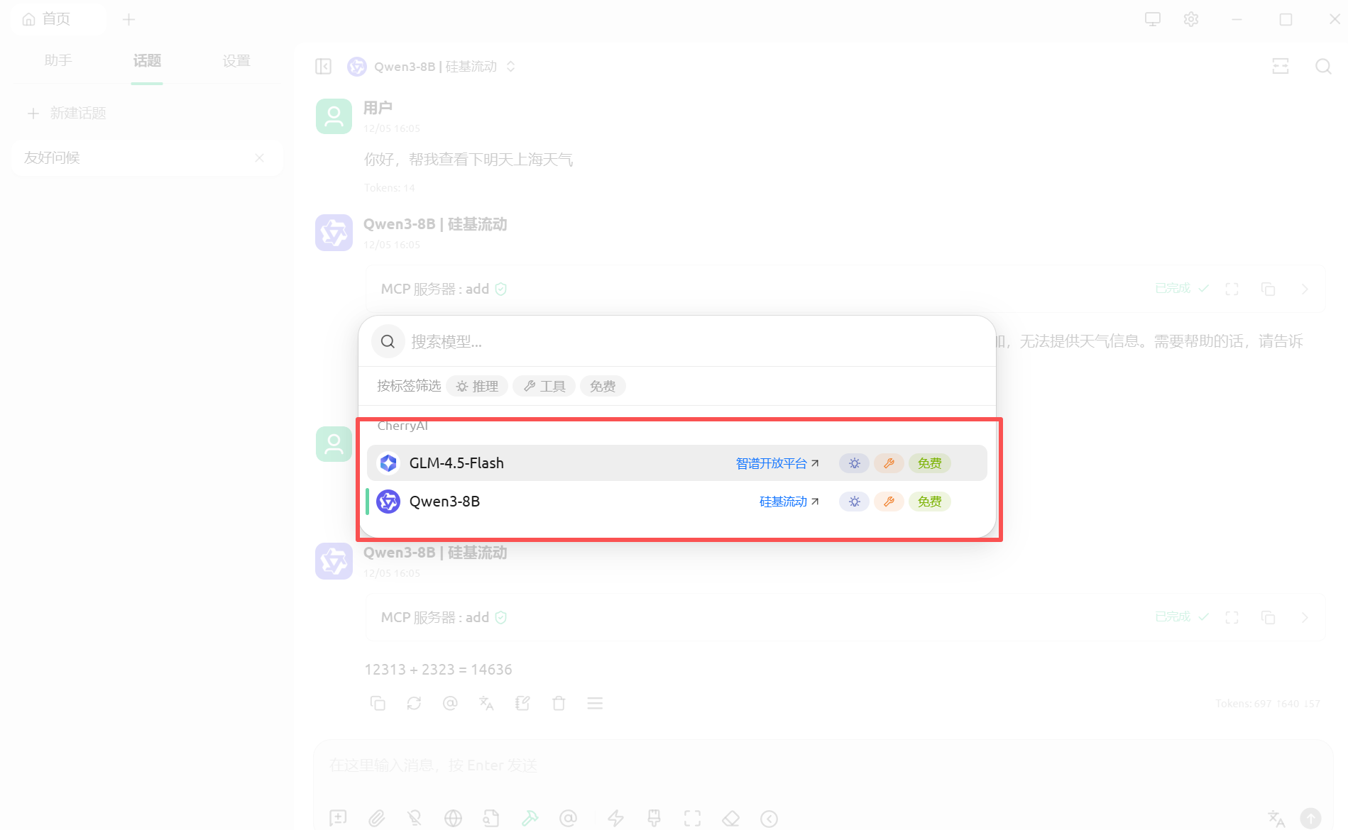 这里我选择了cherry studio 客户端。也可以选择其他AI客户端工具:cursor
