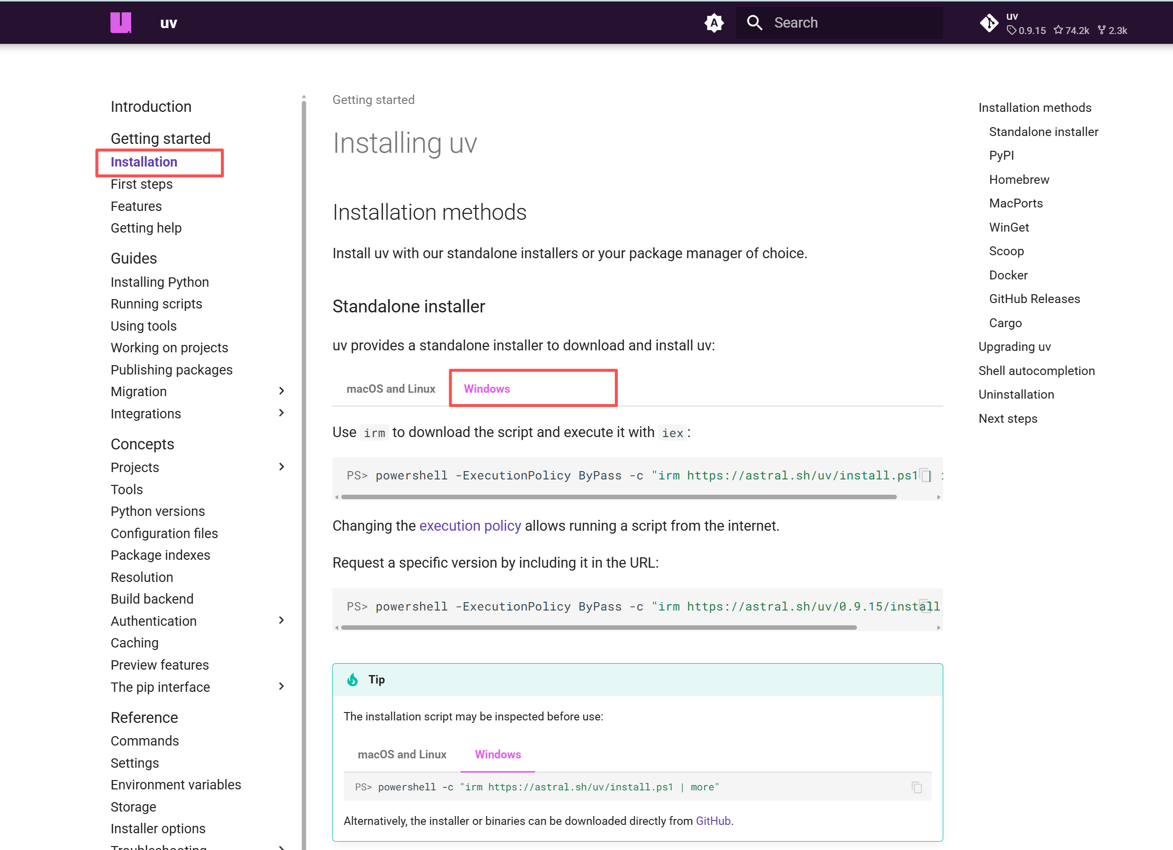 powershell -ExecutionPolicy ByPass -c "irm https://astral.sh/uv/install.ps1 | iex"