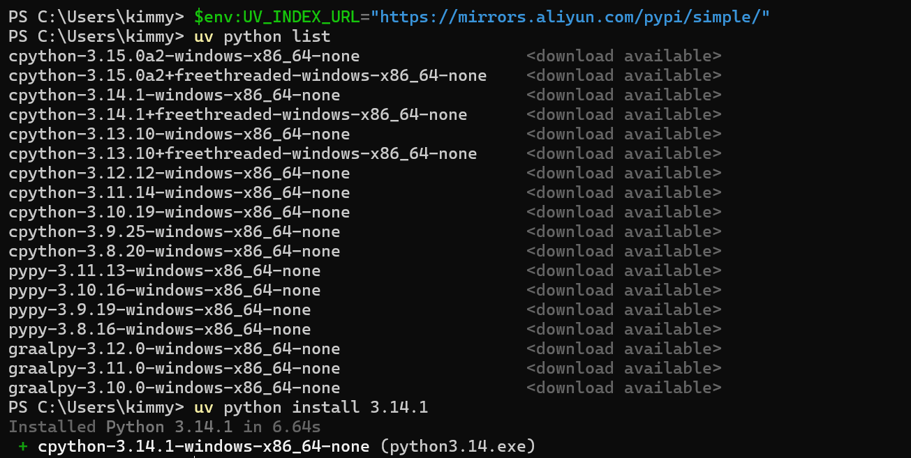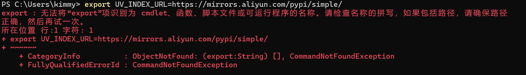 $env:UV_INDEX_URL="https://mirrors.aliyun.com/pypi/simple/"