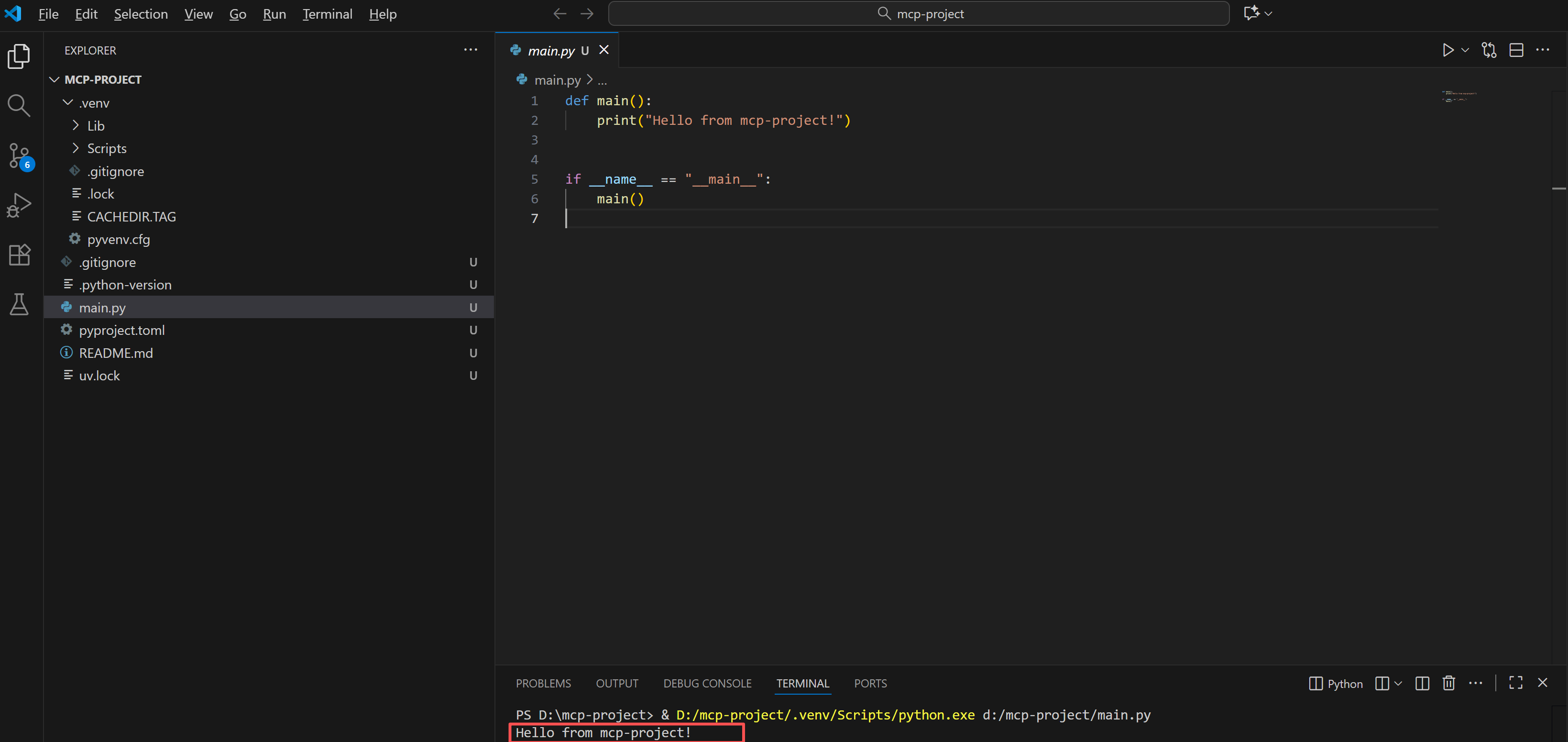 1.创建一个新文件夹(mcp-project)作为项目文件夹