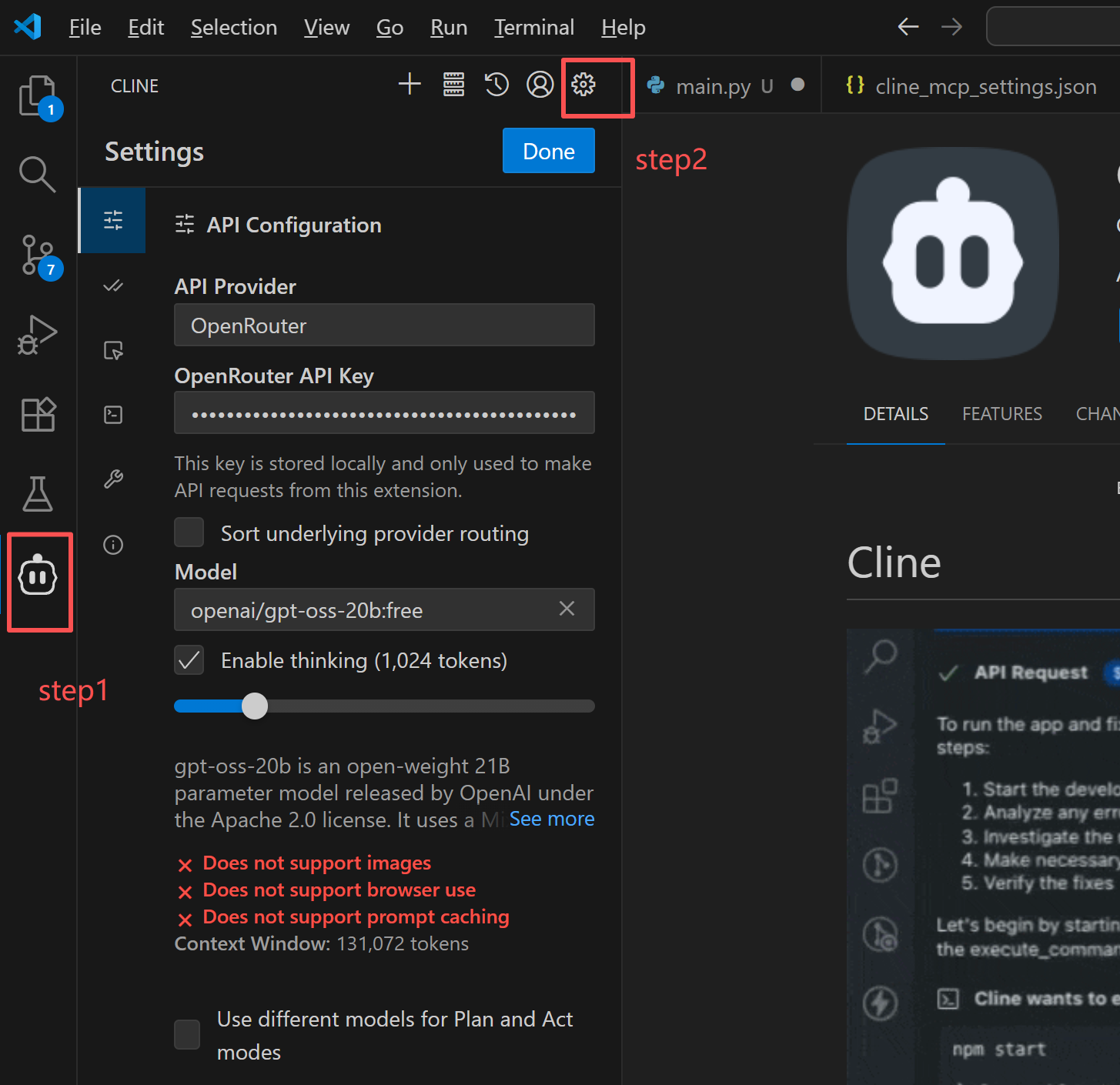 Cline + Openai(free版本模型) + 百度mcp
