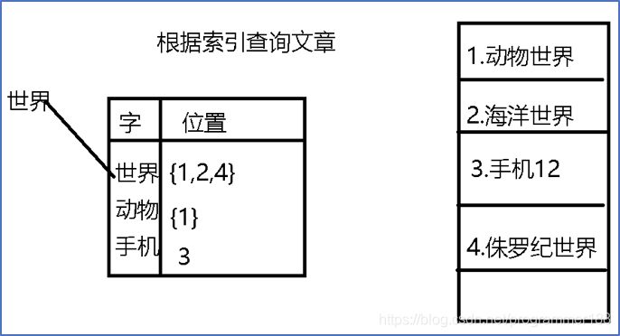 - 根据倒排索引的概念,通过用户给定的关键字先匹配索引文件.之后根据全文检索,返回给用户所有满足条件的document