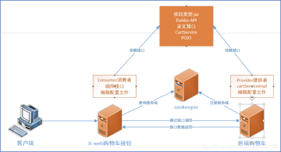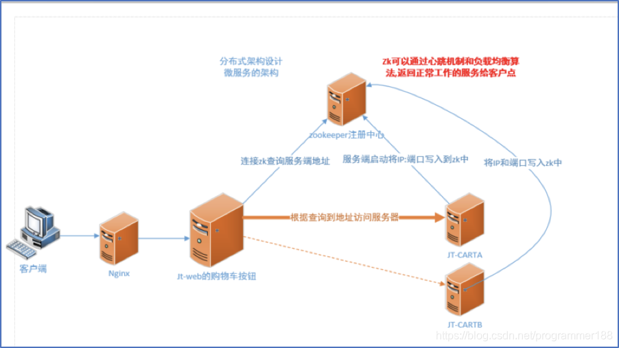1.引入注册中心zookeeper.为了实现宕机后故障快速迁移必须有心跳检测.