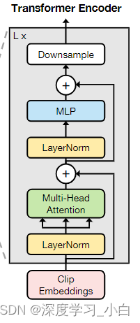 Transformer有 L 个Transformer层,每层由交替的局部多头自注意力(MSA)和MLP块组成,在每个MSA或MLP块之前应用LayerNorm(LN),在每个块之后添加残差连接。MLP使用GELU激活函数。为了捕捉不同时间尺度的动作,可以选择性地附加一个下采样操作符↓(·)