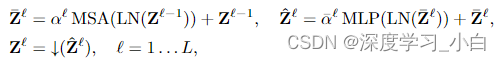 其中, ,softmax按行执行。多头自注意(MSA)进一步并行地增加了几个自注意操作