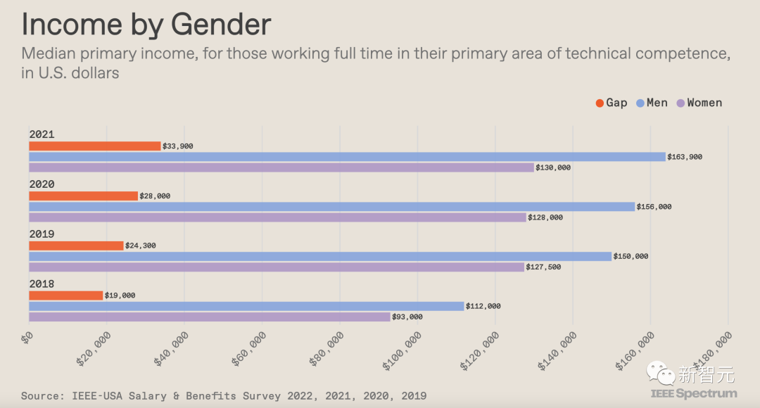 最新数据显示,男女之间的工资差异明显,他们之间工资差距增长至33,900美元。