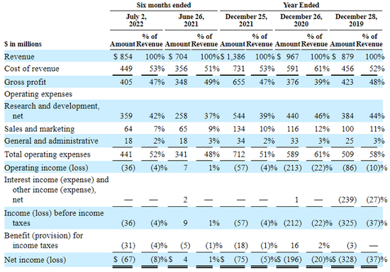 但Mobliey也不是没有隐忧。首先是不容忽视的亏损问题——截至2021年12月25日的财年,Mobileye净亏损为7500万美元,上两个财年净亏损分别为3.28亿美元、1.96亿美元。2022年上半年公司仍亏损6700万美元,而2021年同期为盈利400万美元。