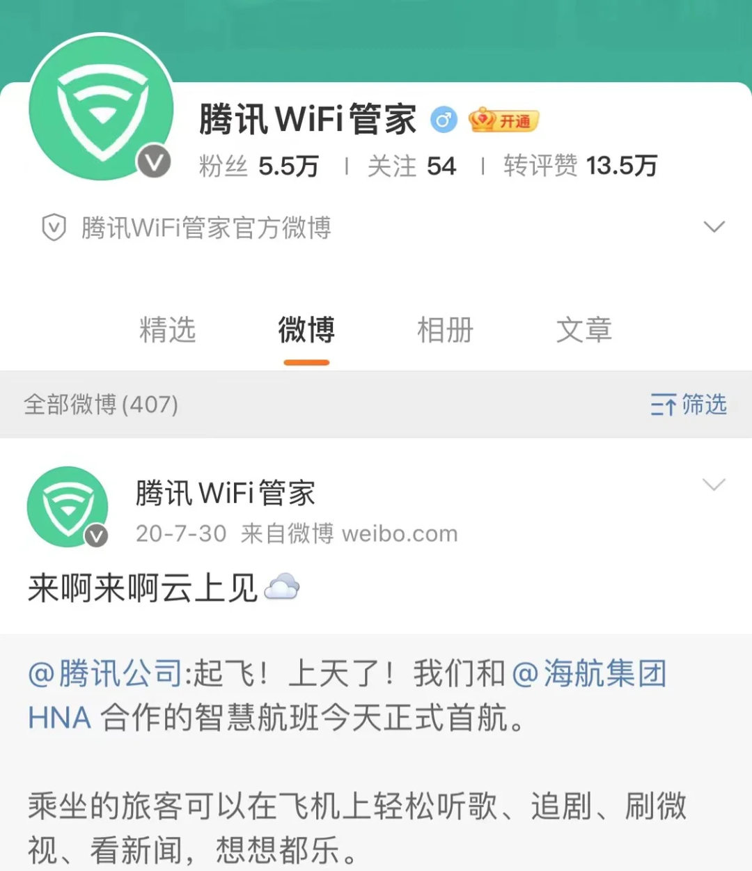 此外,腾讯 WiFi管家的官方微博已停更超两年,也没有继续认证。