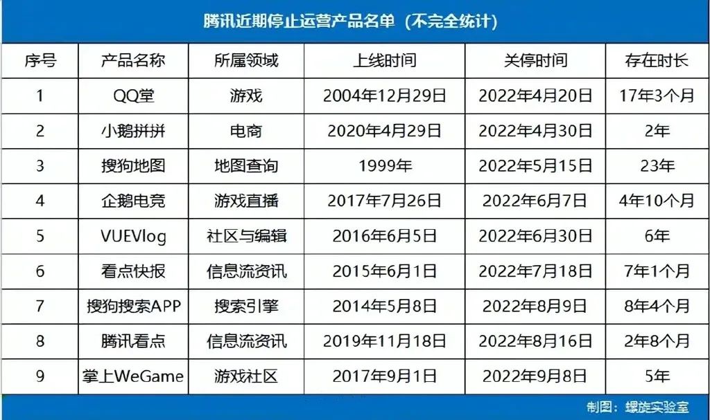 事实上今年以来,腾讯方面已先后关停或调整多款产品和服务,其中包括 QQ 堂、企鹅电竞、看点快报、掌上 WeGame、腾讯看点、搜狗搜索App等。