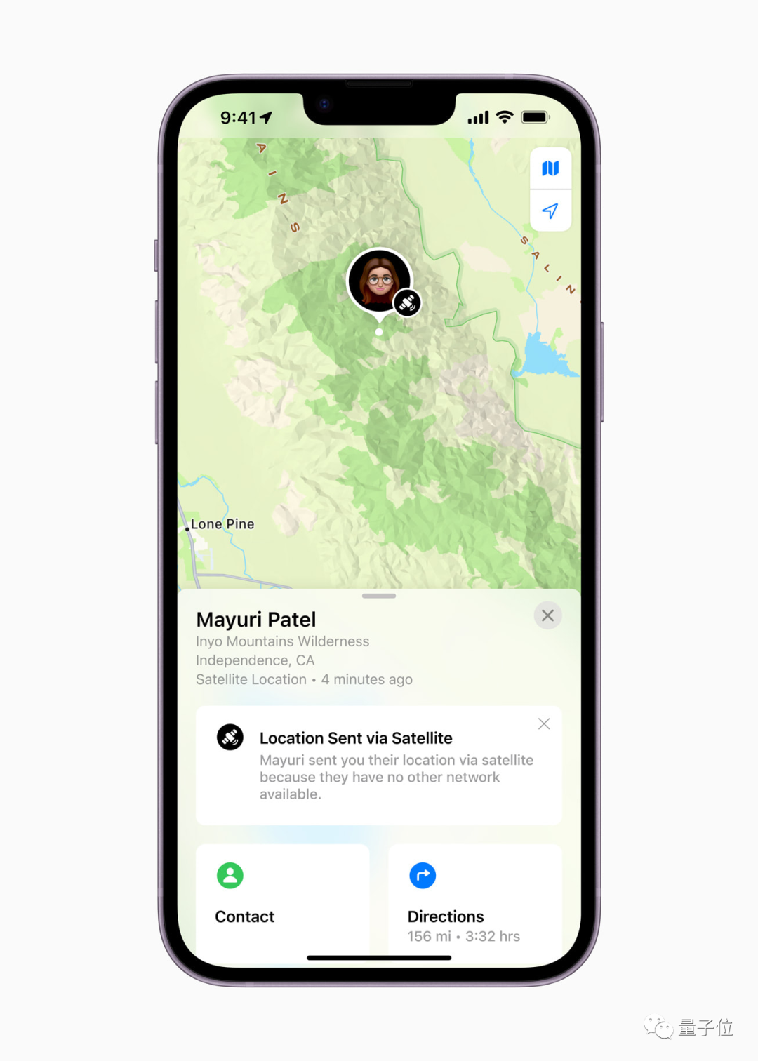 除了紧急联系,也可以用于在没有蜂窝网络信号的时候共享位置,大约15分钟更新一次。